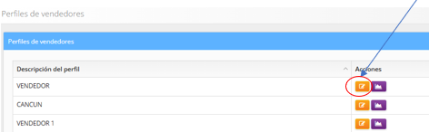 - En perfiles de vendedores seleccionar que vendedor se le va a activar y dar clic en el boton naranja (Modificar registro)