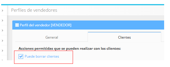 3. En la pestaña de Clientes se activa la opcion de Puede borrar clientes