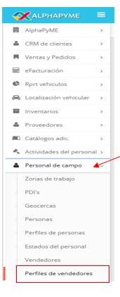 - En el Modulo de Personal de campo seleccionar Perfiles de Vendedores